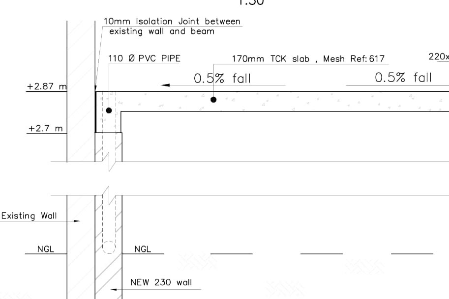 A double-storey Mediterranean-style proposed dwelling in Twentdales Estates required structural design and drawings. A geotechnical investigation was also carried out, which necessitated the use of specially designed foundations. Design work is ongoing as a system of roadway and pavement is required on the site.